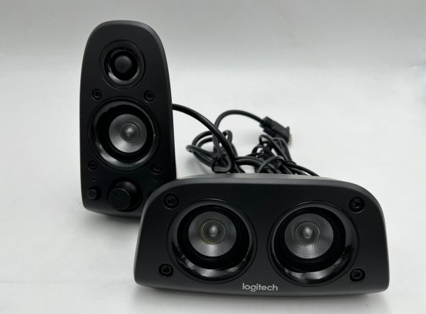 右前方的衛星音箱上輕鬆存取電源、音量以及耳機插孔。
