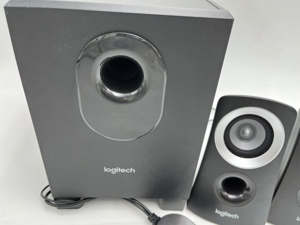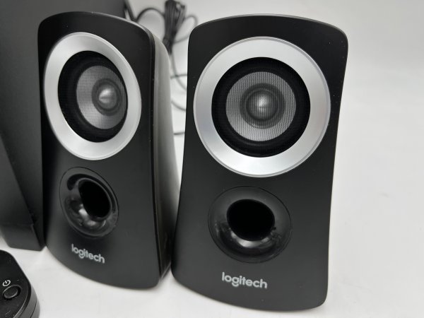 2.1 聲道音箱系統提供平衡的聲音以及來自精巧重低音音箱的增強低音。可透過 3.5 公釐 (0.14 英吋) 輸入連接到任何裝置,使用線控裝置可輕鬆使用電源與音量控制功能。