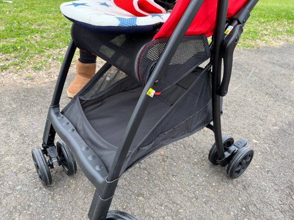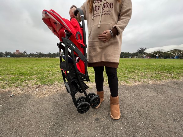 羽量車體3.8kg,車身單手收放,可安定自立,搭載寬廣型置物籃,讓爸媽外出時更加輕鬆!